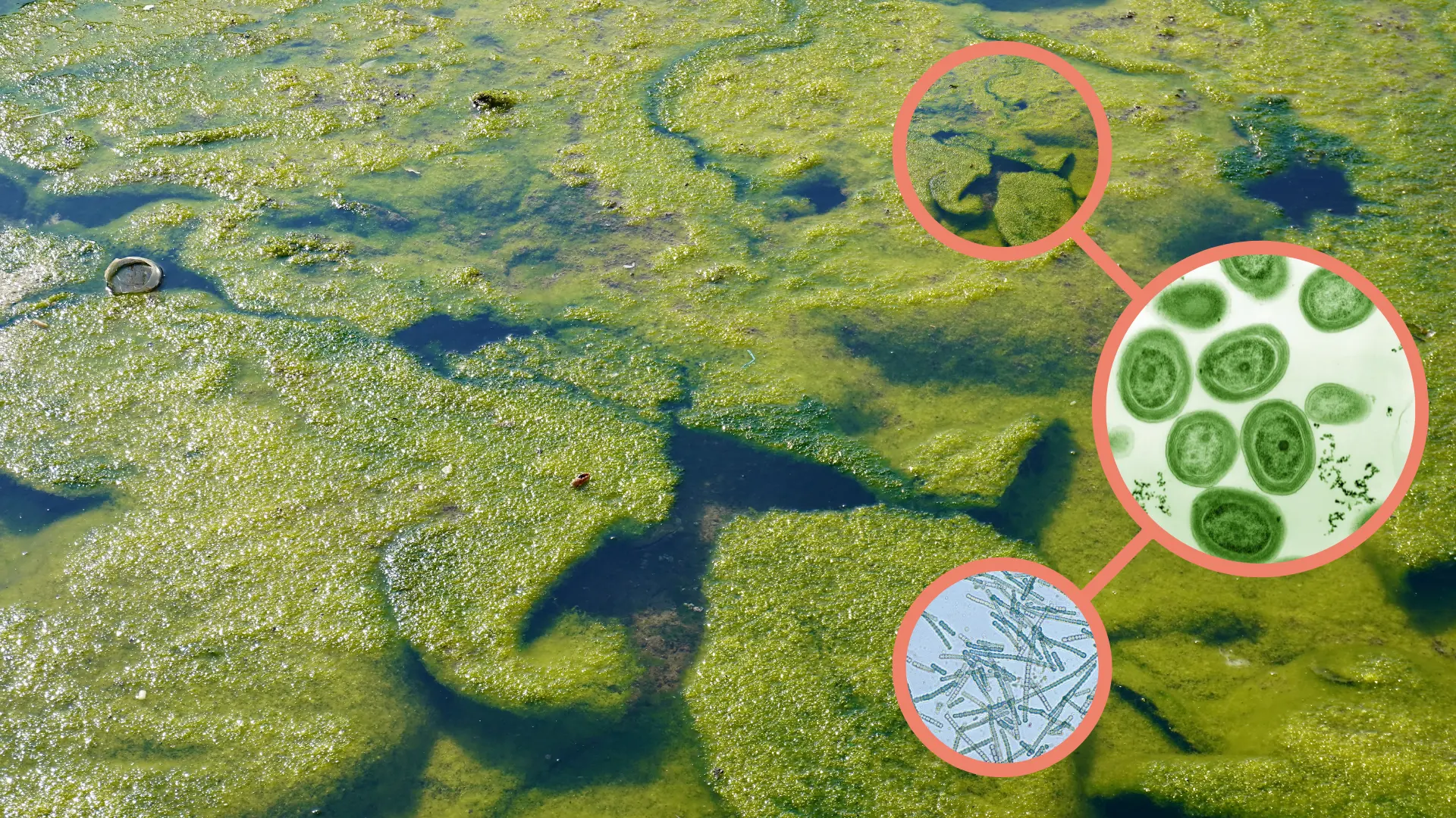 Cyanobacteria | Image Source : Vecteezy | Wikipedia | Image By : Kwee Amanda Alamsyah  | CSIRO & Luke Thompson