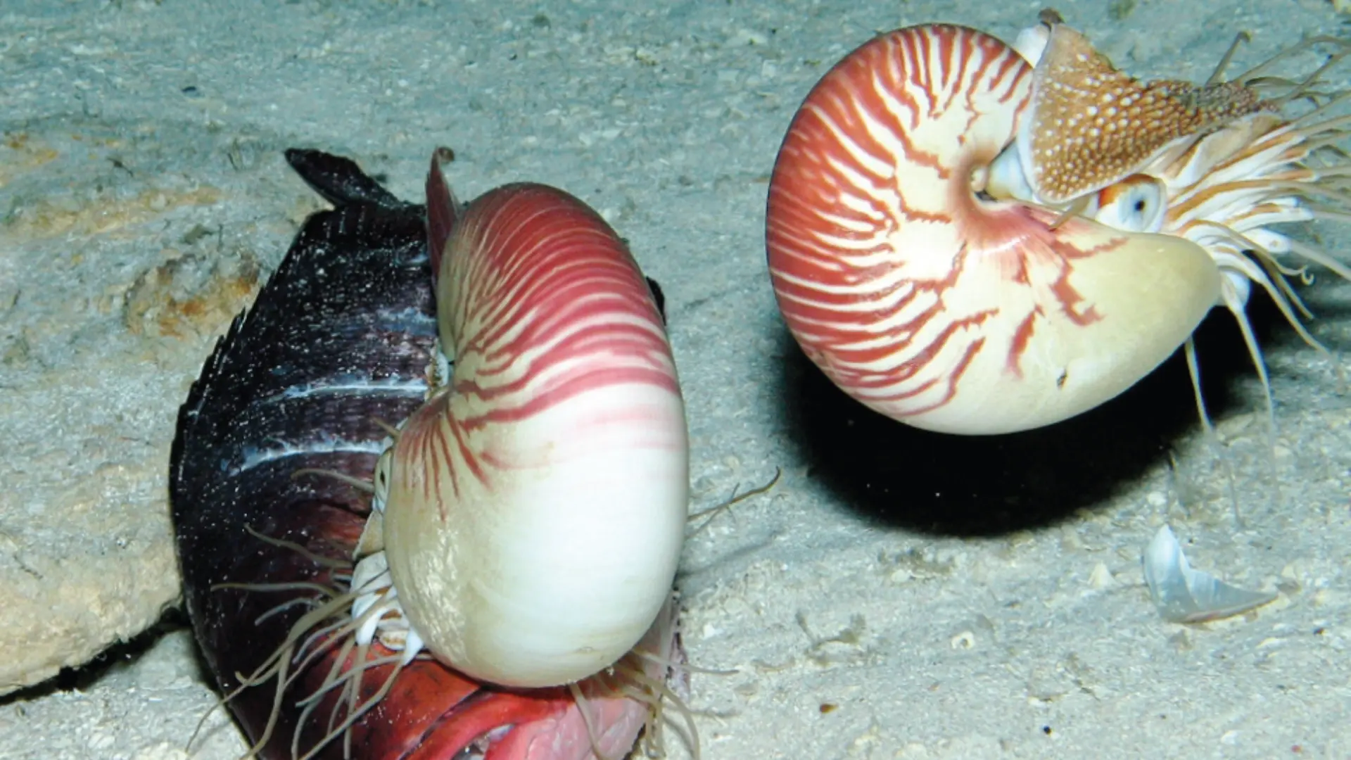 A Nautilus is a pelagic marine mollusk belonging to the Nautilidae family of cephalopods. Nautilus can be easily recognised by its spiral chambered shells, which are considered living fossils. The modern Nautilus has not evolved much from its ancestors, the Nautiloids. Nautiluses are the only remaining members of the Nautiloidea, remaining relatively unchanged for over a million years. Nautiluses came 500 million years earlier than modern cephalopods, including ammonoids and coleoids that appeared 100 million years later than early cephalopods. However, fossil records reveal that the Nautilus did not evolve significantly over the previous 500 million years. They have been harvested by humans for their shells. Nautilus are currently at risk of extinction, but now all Nautilus are protected under CITES Appendix II.